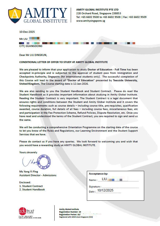 2025年11月4日:申请入读新加坡Amity全球学院