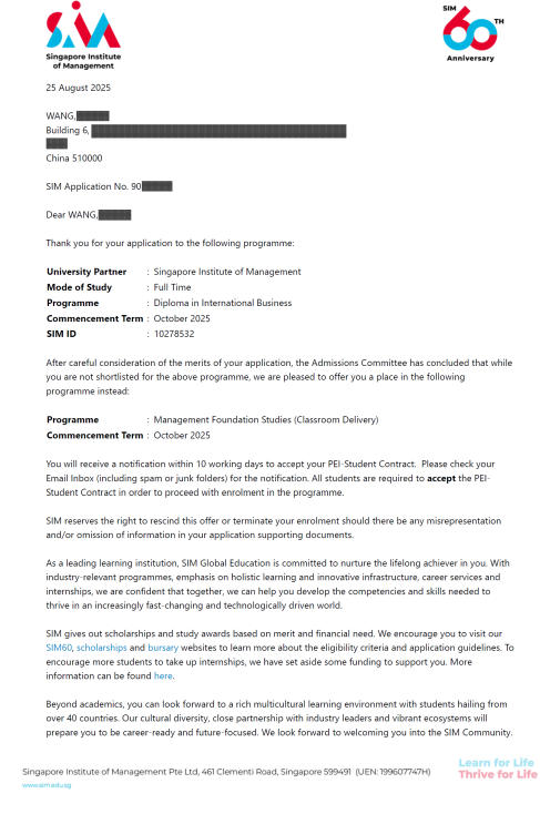 2025年8月29日:收到新加坡移民局ICA的学生签证